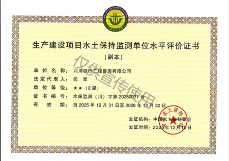 水土保持監(jiān)測單位水平評價證書2星