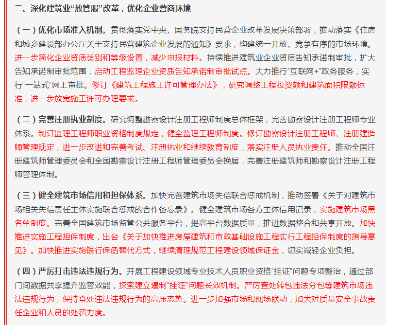 一、建筑業(yè)重點(diǎn)領(lǐng)域改革